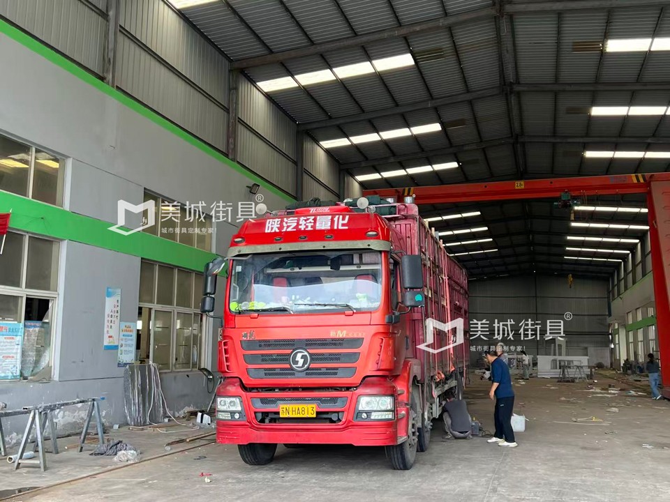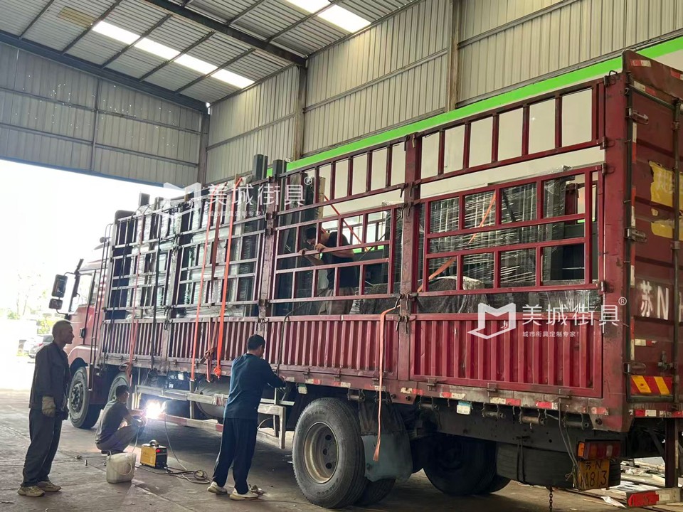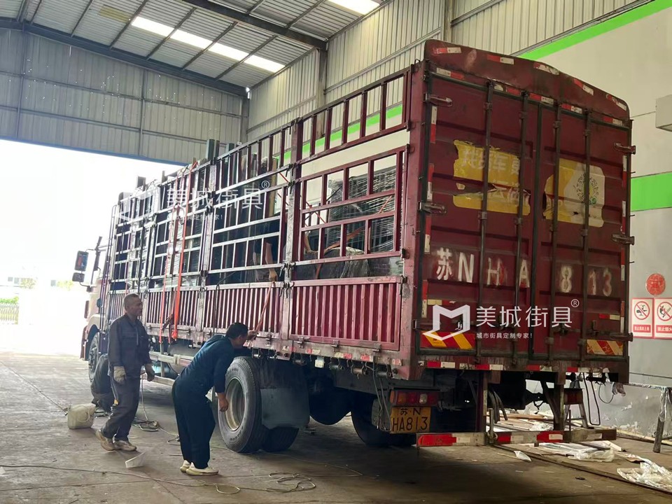 江蘇美城街具為新疆定制公交候車亭第五車發(fā)貨案例